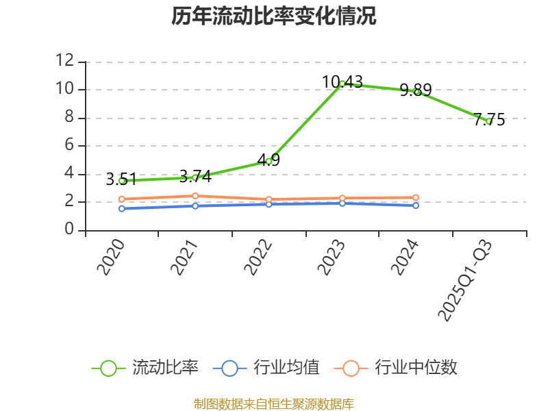 2025年前三季度,公司流动比率为7.75,速动比率为7.35。